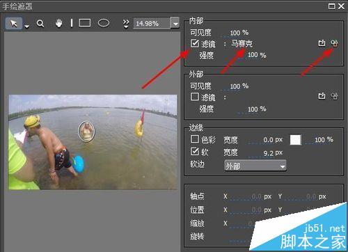 5、勾選濾鏡——設置濾鏡效果——馬賽克,并對濾鏡進行設置