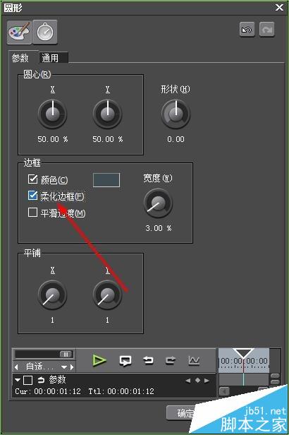 5、設置完成后,單擊確定按鈕,即可柔化轉場的邊緣,點擊播放按鈕,預覽柔化邊緣后的視頻轉場效果