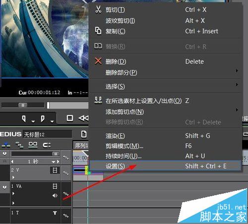 3、在該轉場效果上,點擊鼠標右鍵,在彈出的快捷菜單中選擇設置