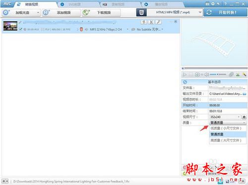 質量那里可以根據需要選擇,質量越高視頻越大,反之則越小,當然視頻變小的話會影響到畫面的清晰度,但是加載速度就會變快很多,各有利弊