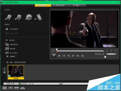 4、如上圖菜單部分,可以添加其他的視頻文件、VSP文件(會聲會影編輯文件)、DVD文件,或從移動設備導入文件,可以為視頻添加或制作章節,也可以對所導入的視頻文件進行簡單的編輯并添加字幕。
