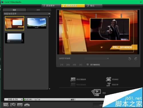5、點擊下一步。如圖所示,可以選擇菜單場景。我們再看最底部是對光盤的屬性設置和視頻寬高比(4:3,16:9)的設置,已經購買并擁有打印機的也可以打印光盤貼紙。