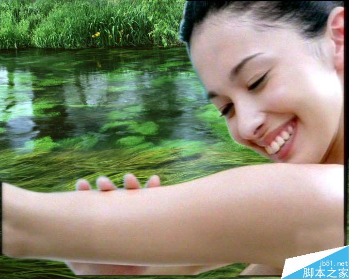 一、先建一合成,調入一背景,再調入一人物圖片,本例用的人物是玉蘭油廣告MM,很靚吧?!