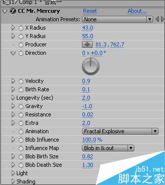 三、給上面的一層加上CC Mr.Mercury特效,設置參數如下:
