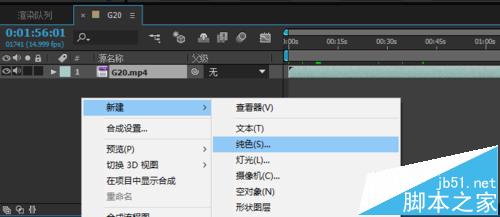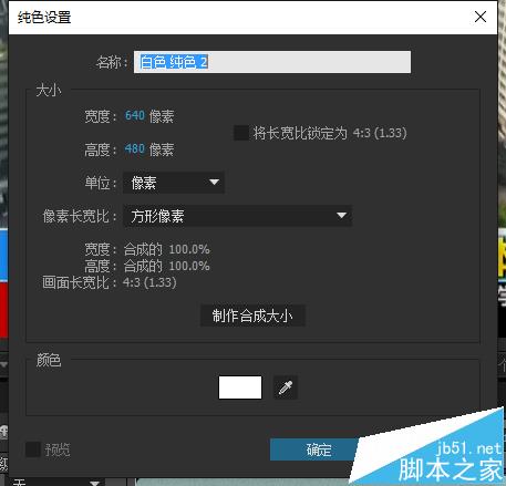 2、在項目里面再新建一個和項目一樣大小的白色固態層,名字和其它都不用修改,只要把顏色改成白色就可以,確定后放在最上面,