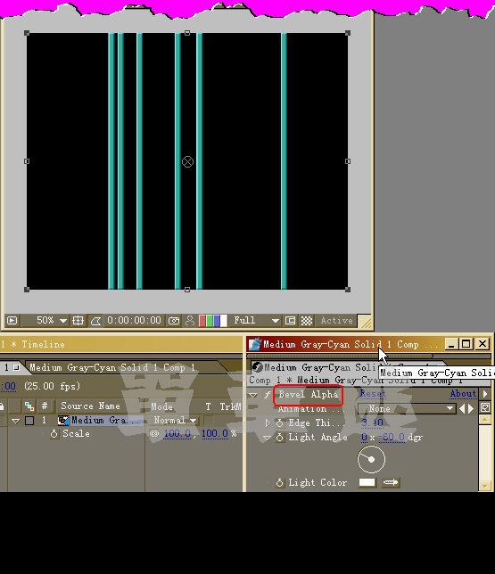 4. solid沒有立體感,可以新建一個comp,把solid條的comp拉近來,然后加Bevel Alpha,調到合適的數值。