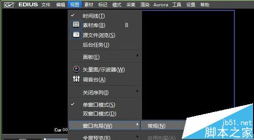 4、這個”常規窗口布局“在6版本的EDIUS里面,是”視圖“里面的”窗口布局“里面找到的。