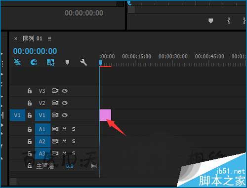 5、在這個版本中查看相片的信息不是像之前版本中直接就可以在項目面板中看到素材的大小。這里需要把素材放入到時間線面反中后,再進行查看。把素材拉入視頻軌1中。