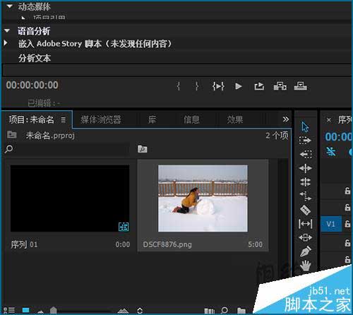 4、這時可以看到在項目面板中已經把剛才導入的素材在這里顯示出來。要用到的相片素材導入到面板中后,接下來就要根據相片來自己定義一個合適的序列。