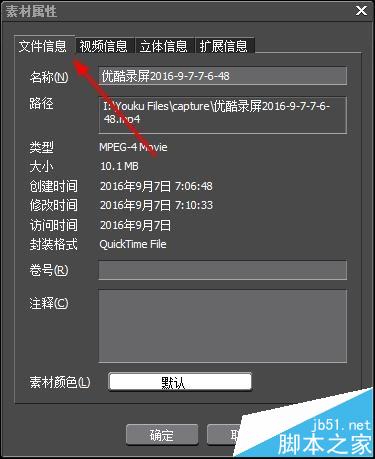 5、我們在切換到視頻信息選項卡,在這里我們可以查看視頻文件的持續時間、時間碼機幀尺寸等信息