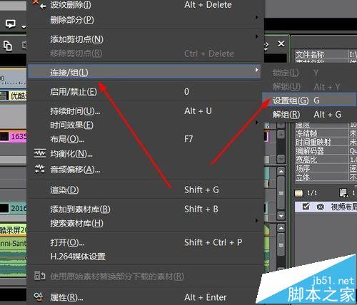 3、在素材文件上單擊鼠標右鍵,選擇連接/組——設置組命令