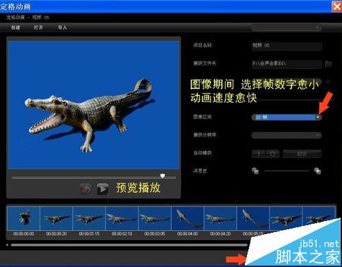 1、打開會聲會影,點錄制/ 捕獲選項按鈕,點“定格動畫”,從電腦文件夾中選擇鱷魚素材素材