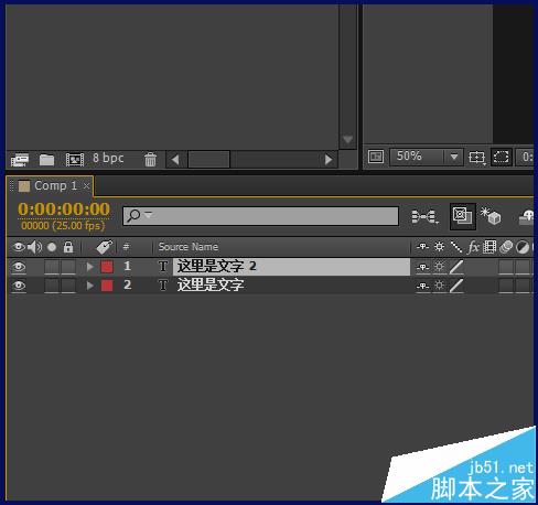2、因為這樣復制的效果,當改動其中一個合成中的元素,其他合成的也會改變,可以看到方法/步驟一中復制后的圖層名稱是不一樣的,而這里的名稱是一樣的
