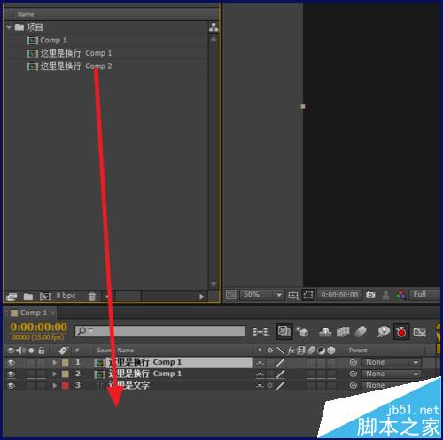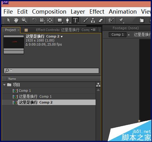 3、需要在【Project】窗口中找到該合層,再按Ctrl+D復制