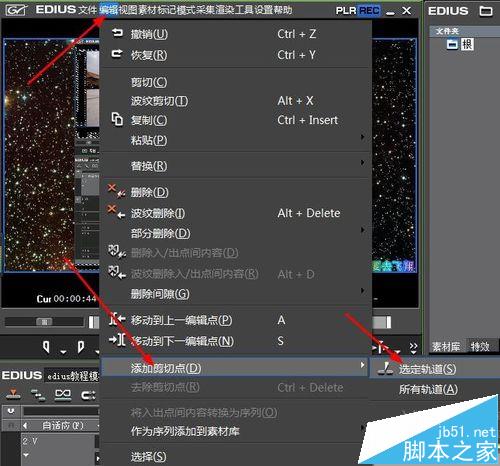 3、點擊編輯菜單,在彈出的菜單列表中選擇添加剪切點——選定軌道命令