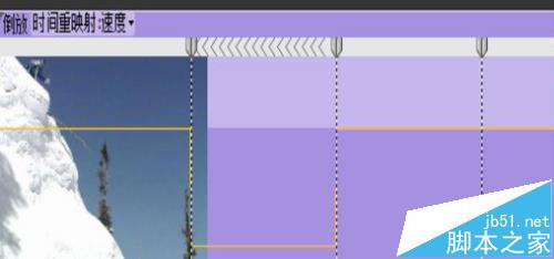 4、選中”倒放“,透明度旁邊的小三角形,選擇時間重映射——速度,然后將時間標尺的一個較中間的位置,單擊視頻軌前面的關鍵幀圖標,為其添加關鍵幀,然后按住”Ctrl“鍵,用鼠標拖拉那個關鍵幀,如圖4,按空格鍵在節目面板預覽倒放的效果。