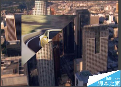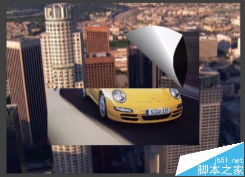 6、選中效果面板中的【卷頁(yè)】——【剝開(kāi)背面】添加到汽車(chē)03.jpg的結(jié)尾處,示例效果如圖6.