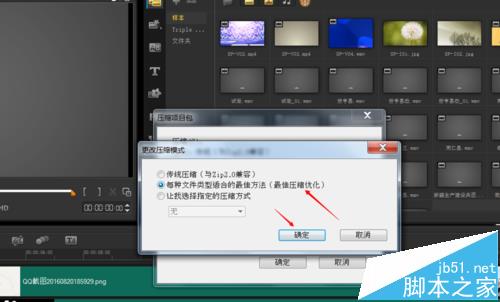 6、點擊壓縮包,點擊確定。選擇壓縮模式,一般是最優。