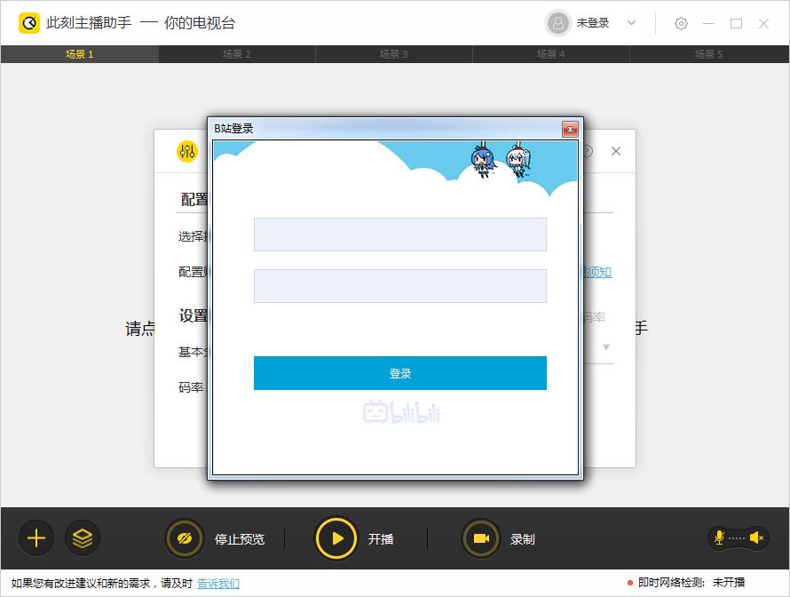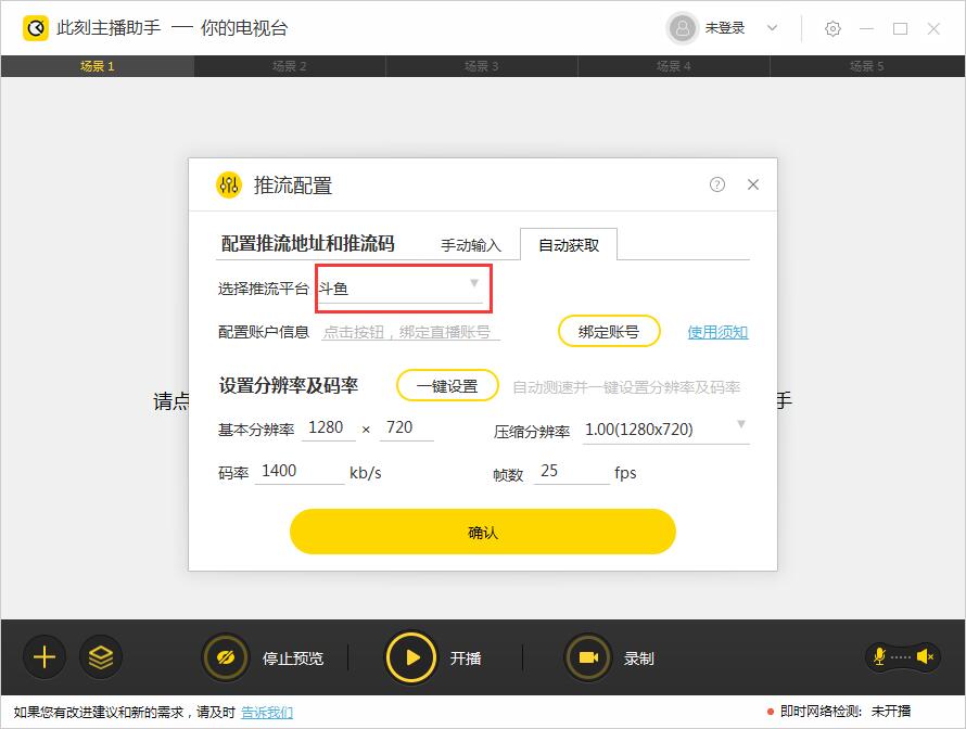 點擊“綁定”按鈕,輸入自己的直播平臺賬號,點擊“登錄”