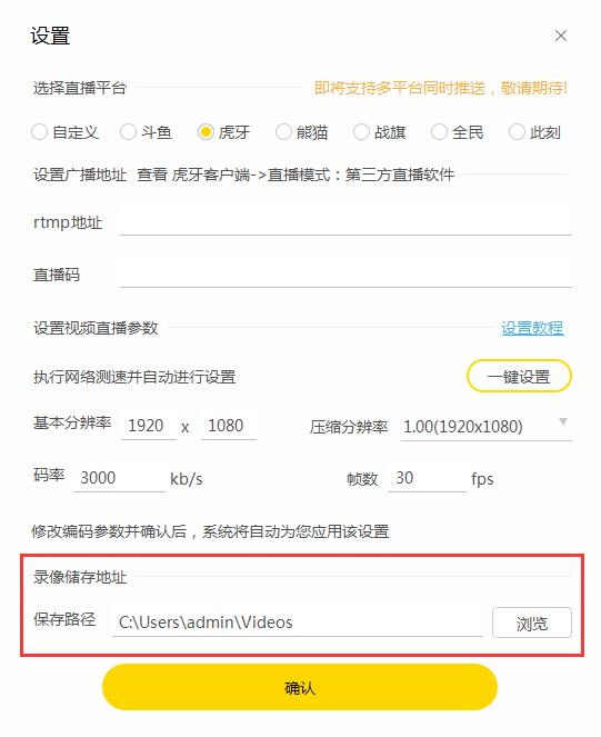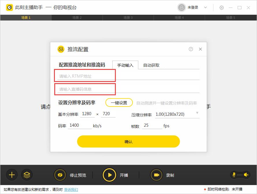 將獲取到的推流地址和直播碼輸入此刻主播助手地址欄。