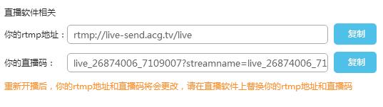 ②登錄個人直播間,點擊開啟直播按鈕,獲取個人直播間專屬的推流地址和直播碼;