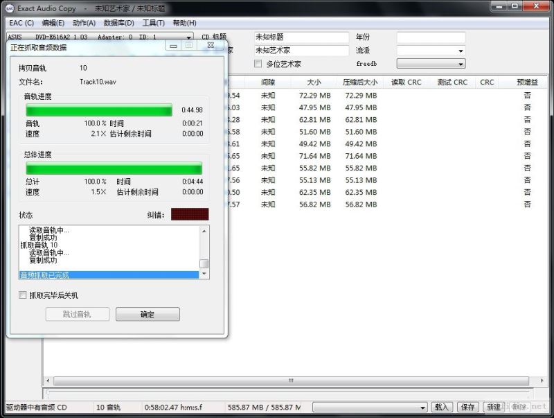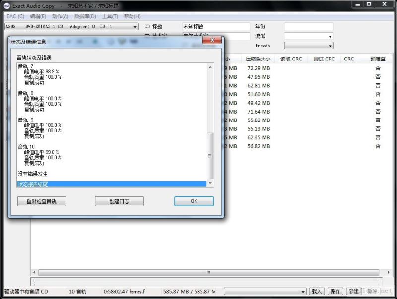 得到的整軌的WAV文件與CUE和抓軌記錄LOG