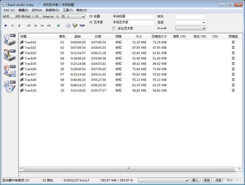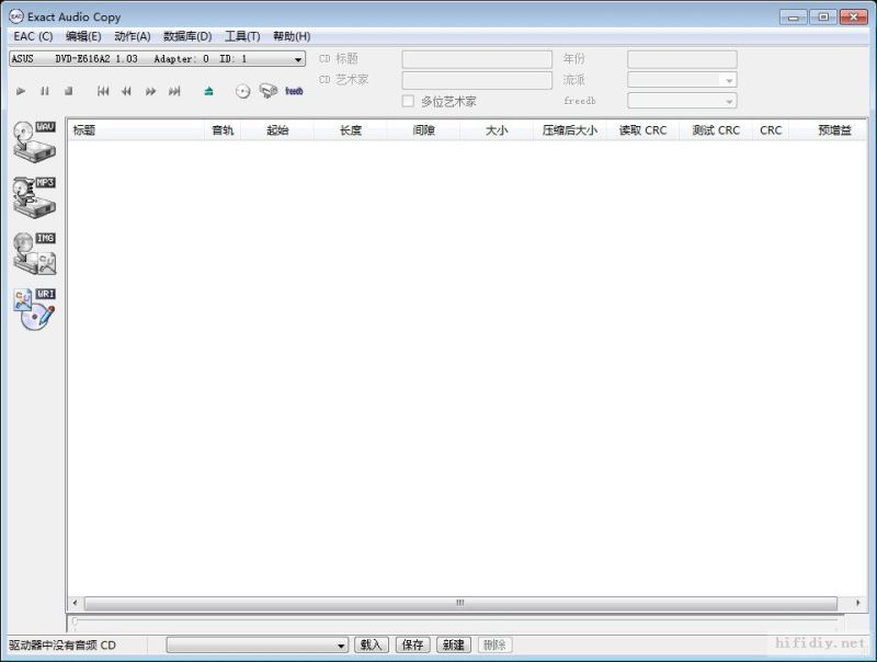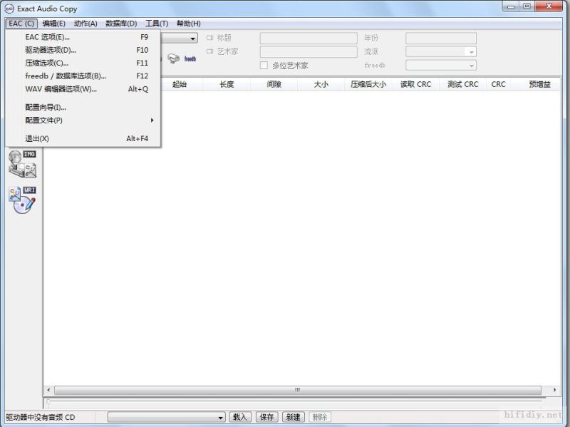 (01)首先,執行Exact Audio Copy(以下簡稱EAC)主程序,打開EAC的主界面;