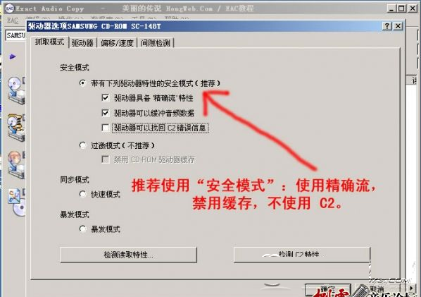 (02)接著打開菜單欄EAC項中的“驅動器選項”,準備對“抓軌模式”進行設置