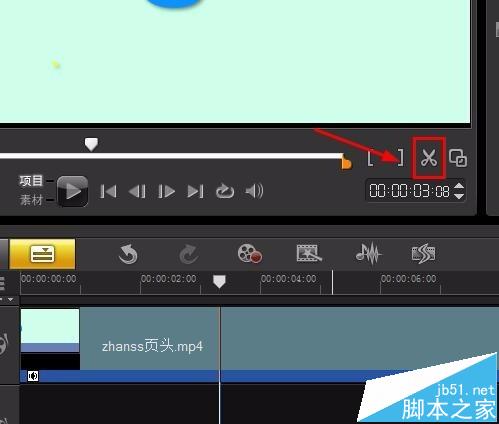 4、在視頻下方找到像一個剪切的圖標準備進行剪切分割,如圖。