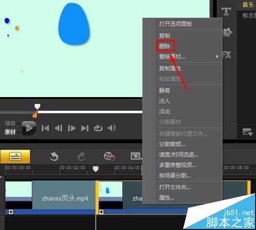 5、選擇不需要的視頻部分在點擊右鍵選擇刪除。