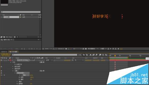 6、然后再在時間線一秒處,將開始處的數(shù)值調(diào)成一百,到此文字逐字出現(xiàn)的動畫完成。