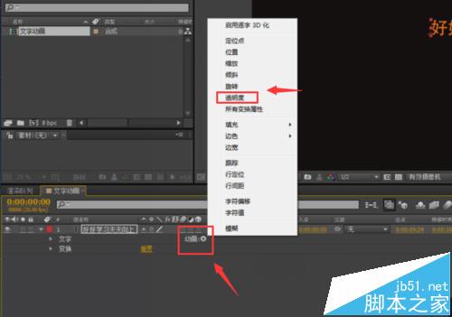 3、打開文字屬性欄,在動畫欄中找到“透明度”,并添加到文字屬性中。