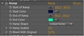 1、新建“葉子水泡”合成,持續(xù)時(shí)間為7s,新建一個(gè)深藍(lán)色固態(tài)層,給該固態(tài)層添加Effect—Generate—Ramp漸變特效,參數(shù)設(shè)置如圖1所示。其中Strat Color為#050E42,End Color為#00FEA7。