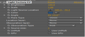 2、再給該固態(tài)層添加外部插件特效Effect—Knoll Light Factory—Light Factory EZ,參數(shù)設(shè)置如圖2所示。其中Color的顏色為#25517F。