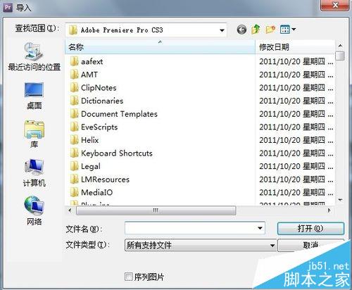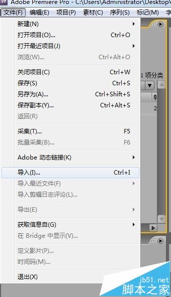 1)選擇文件→導入命令。2)雙擊項目面板(空白處) 3) Ctrl+I快捷鍵