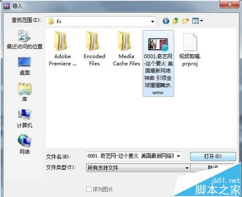 6、找到視頻點擊打開就導入項目面板了(視頻格式最好是WMV的,可以用格式工廠轉一下視頻的格式,有的格式導不進來)