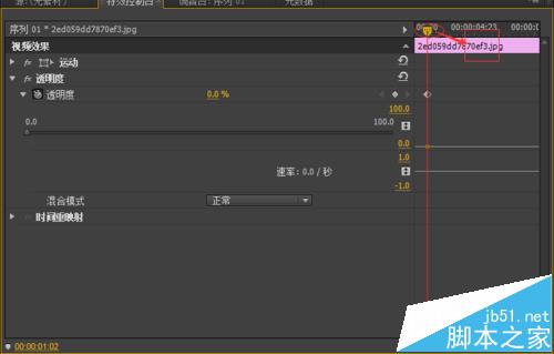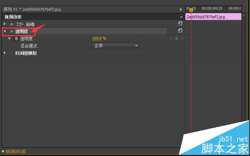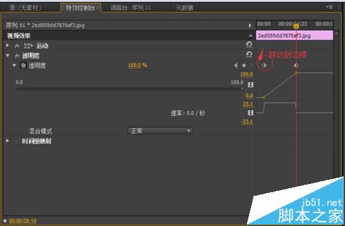 3、點擊透明度的關(guān)鍵幀,再把透明度的控制條拉到0處(也可以直接輸入數(shù)值)。