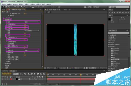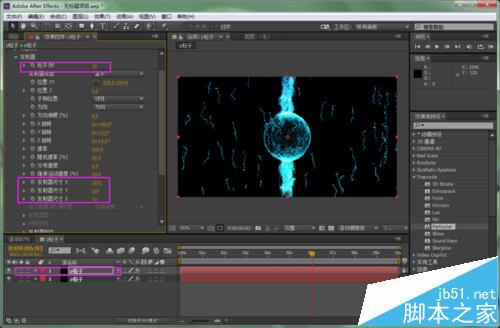 3、調整粒子參數,大小為1,生命為10s,注意你的合成時間為幾秒,這里設為幾秒或大于合成時間。生命期顏色可以換成自己想要的效果。粒子可以大一點。