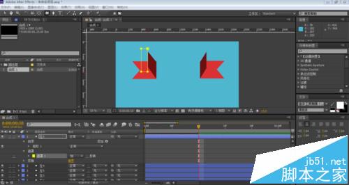 5、接著給左邊深紅色的棱形做動(dòng)畫。選中圖層,畫一個(gè)如圖一樣的遮罩,給遮罩形狀添加一個(gè)關(guān)鍵幀,然后把時(shí)間指示器調(diào)到第十幀的位置,再把遮罩拉長(zhǎng)。
