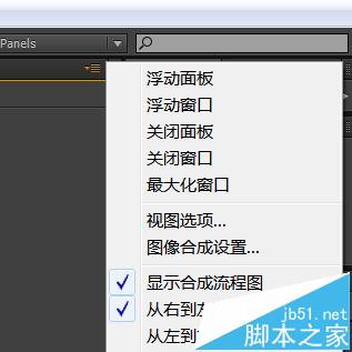 3、我們在“合成”面板右側(cè)點擊如圖位置,在彈出的菜單中,大家打開“圖像合成設(shè)置”命令
