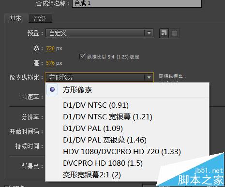 8、其實我們在新建圖像合成的時候,最好選擇“PAL D1/DV Square Pixel”即方形像素。