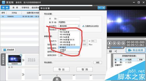 4、添加視頻后,單擊“導出視頻”,尋找所要轉變的格式,并且可以變換參數