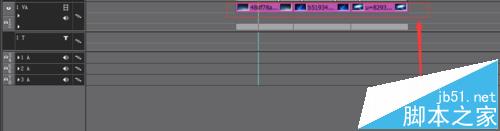 4、將黑色色塊素材拖到三張照片軌道上方。