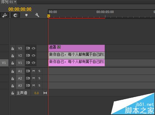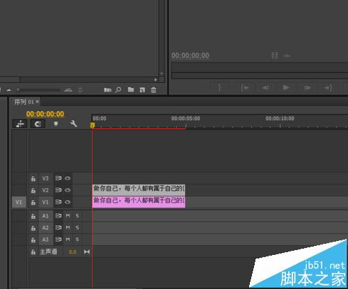 4、在項目面板中找到新建的那個字幕,然后拖到第三個軌道上。