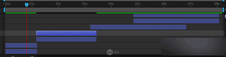 4.利用不同的變化效果去調節關鍵幀,就能做到縮放旋轉漸變等效果了。另外素材拖入圖層是默認占全部時長的可以通過時間軸拖動來調節素材長短來決定顯示的時間。點擊素材后鼠標放到左右會出現拖動的鼠標指針,這時就能拖動來調節了,在英文輸入狀態下,IO和[]可以快速對齊拖動的指針,銜接不同的素材。