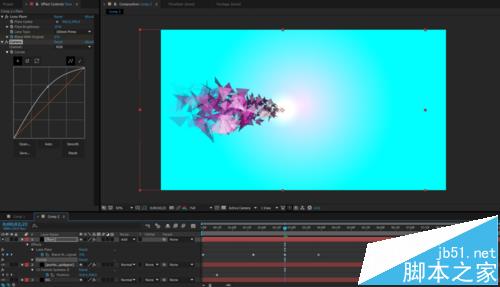 2、加個光,模式疊加,Blend with original K幀,讓光越來越強烈再消失,寫個表達式,讓光和粒子連接運動。