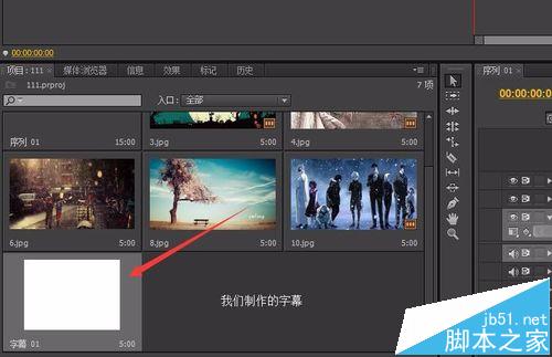 5、在項目面板可以看到我們制作好的字幕,直接把字幕拖動到序列面板的視頻軌道;