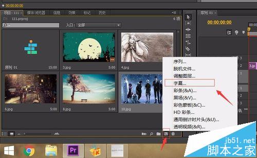 1、利用字幕改變視頻背景顏色,點擊項目面板的右下角的新建分項;