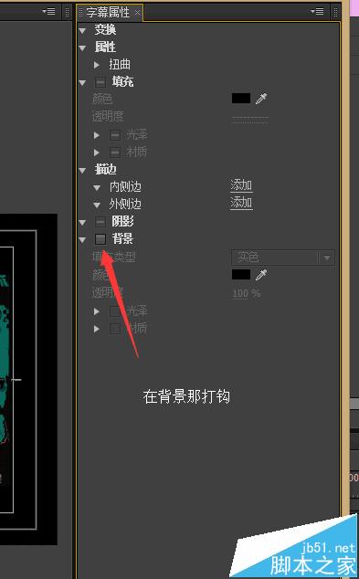 3、彈出的字幕框,在右側背景選項上打上勾;