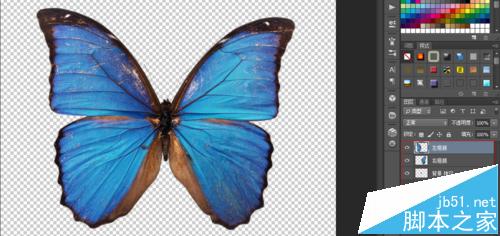 1、準備好蝴蝶圖片,并在photoshop中將蝴蝶的左翅膀、右翅膀和身體分作三個獨立的圖層,并分別命名為“左翅膀”、“右翅膀”、“身體”。